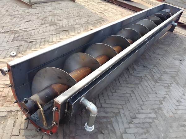 U型螺旋输送机由驱动装置(减速机和电机)、头部装配、机壳、螺旋体、槽体衬板、进料口、出料口、机盖、底座等组成。