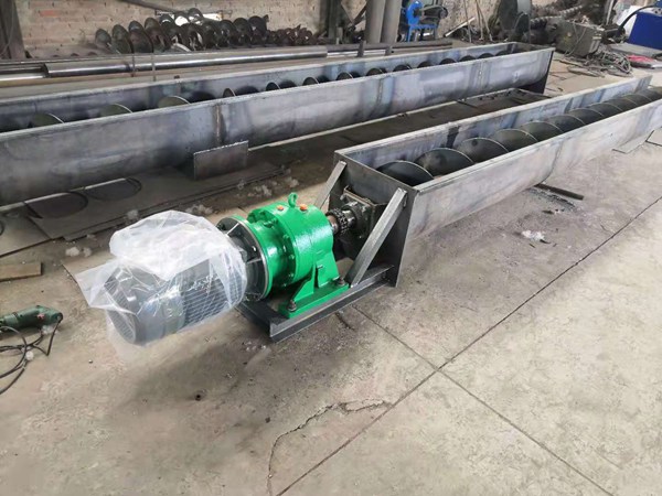 物料从进料口加入,当转轴转动时,旋转的螺旋叶片将物料推移而进行输送,但由于物料本身的重力和料槽对物料的摩擦力的缘故,才不与螺旋叶片一起旋转,在由螺旋轴的拖动下,物料往出料口方向移动,将物料输送到料仓或料池中。
